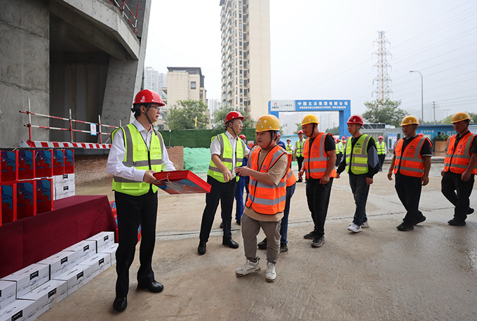 10月1日,國慶中秋雙節(jié)假期首日,集團(tuán)公司黨委書記、董事長朱永繁,黨委副書記、總經(jīng)理張剛一行赴成都市部分項目現(xiàn)場帶班檢查并慰問一線員工。